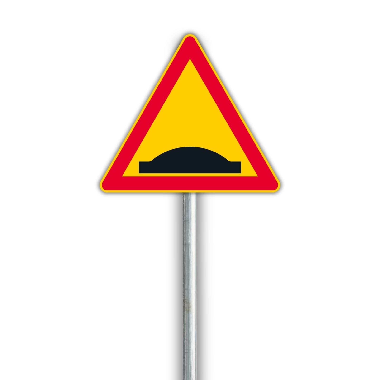 Varoitusmerkki, joka varoittaa töyssystä tai korotetusta suojatiestä.