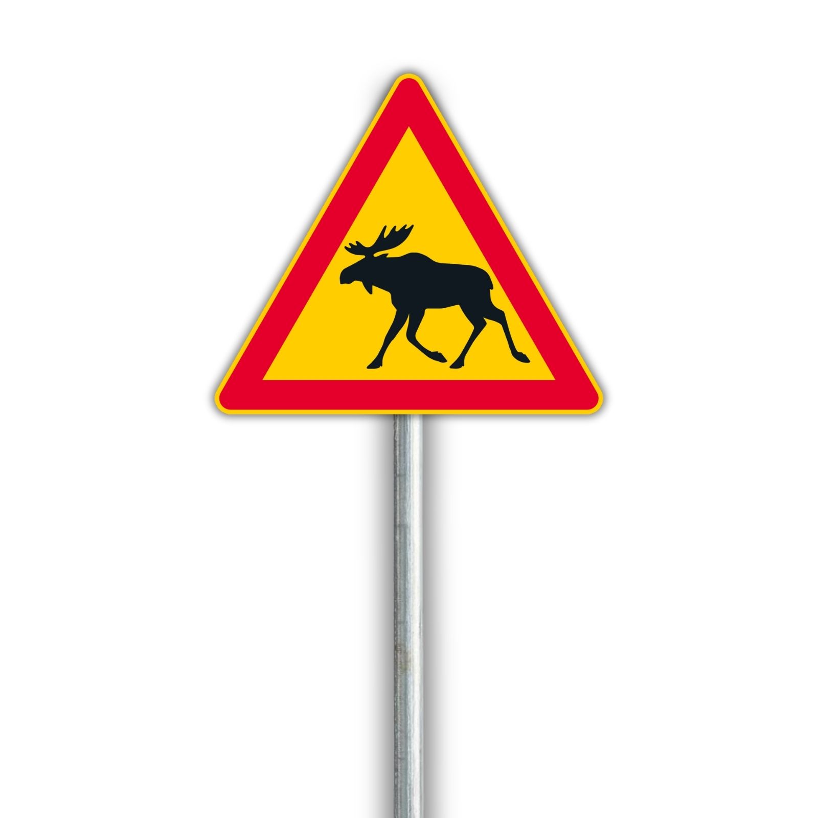 Merkillä voidaan varoittaa tienkohdasta tai tieosuudesta, jossa liikkuu hirviä.