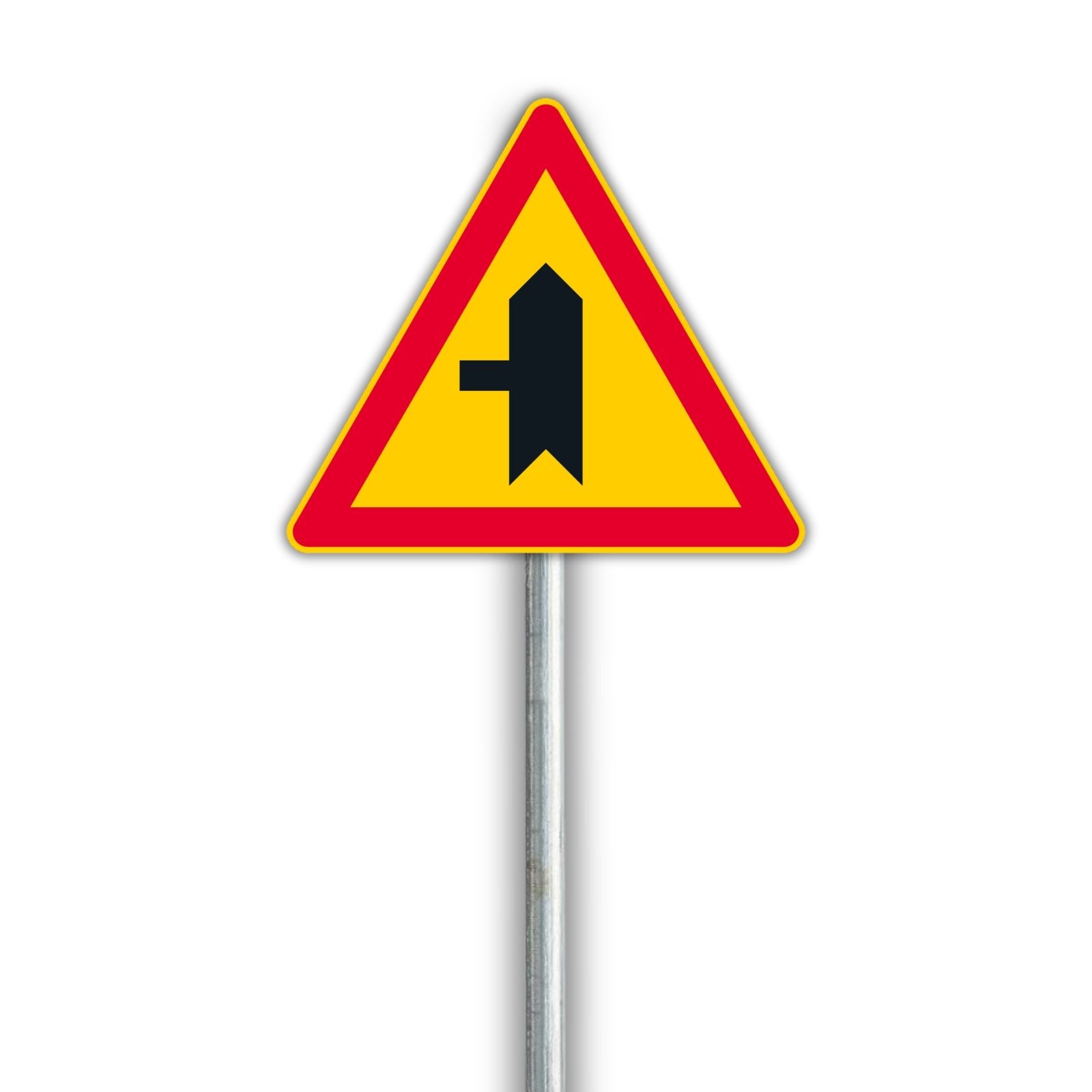Varoitusmerkki, joka varoittaa sivutien risteyksestä (vasen).