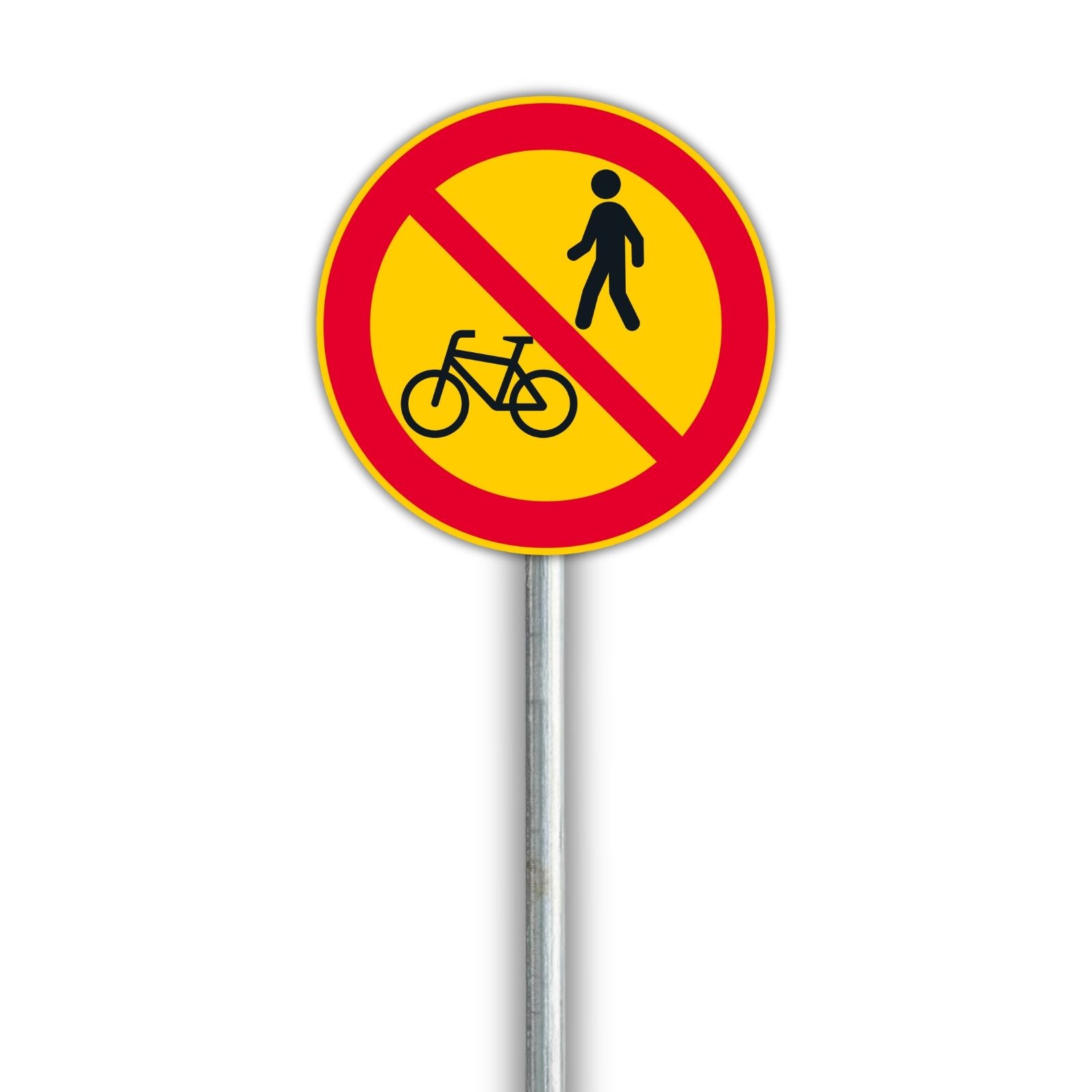 Merkki osoittaa, että sekä jalankulku että polkupyörällä ajo on kielletty kyseisellä tiellä tai alueella. Kielto koskee kaikkia jalankulkijoita ja polkupyöräilijöitä.