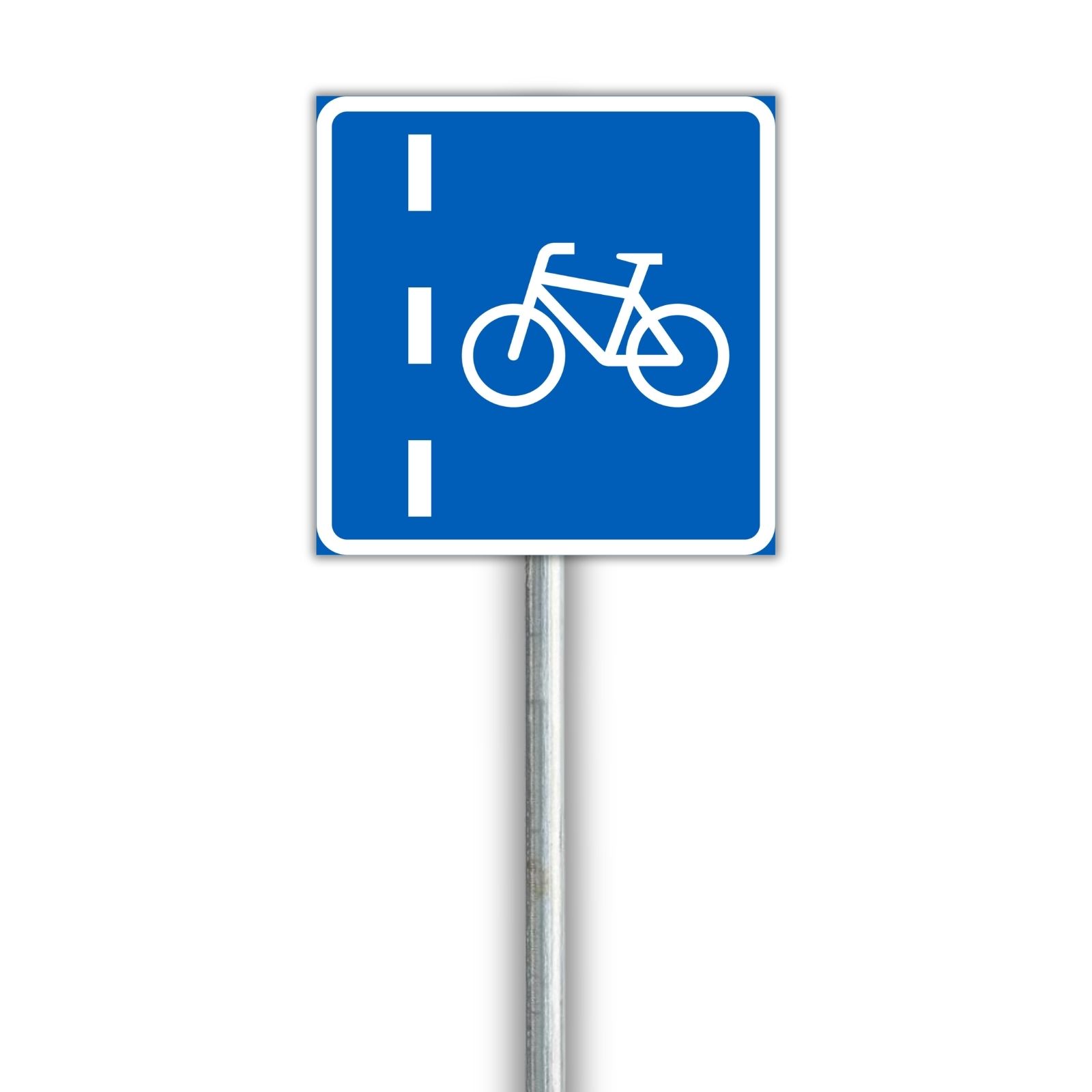 Liikennemerkki, joka osoittaa ajoradalle merkityn pyöräkaistan. Saatavilla vuokraukseen työmaille ja tilapäisiin liikennejärjestelyihin.