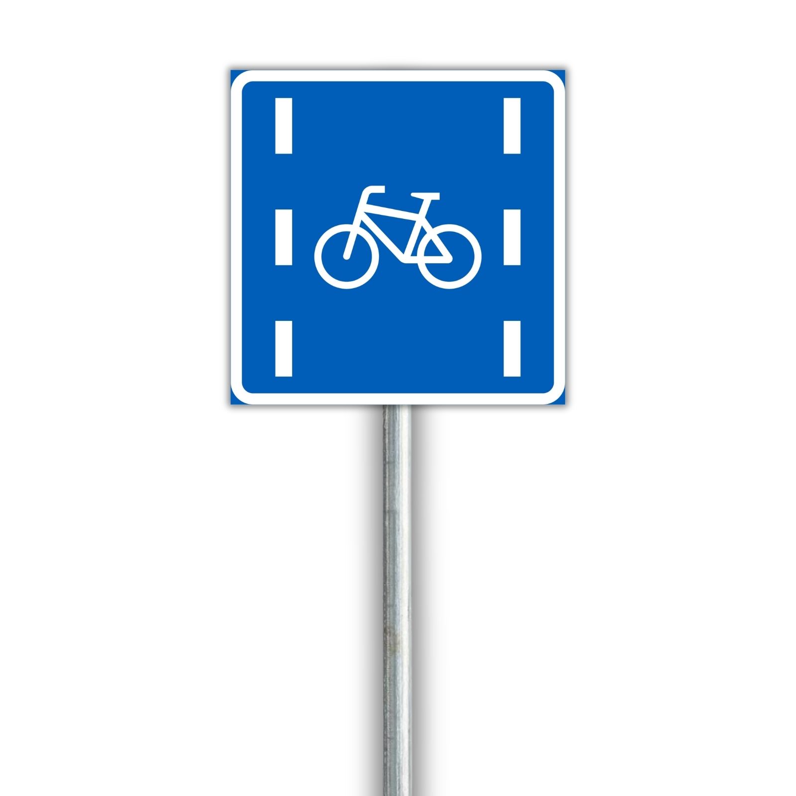 Liikennemerkki, joka osoittaa pyöräkaistan. Soveltuu erilaisiin kaistajärjestelyihin. Saatavilla vuokraukseen.