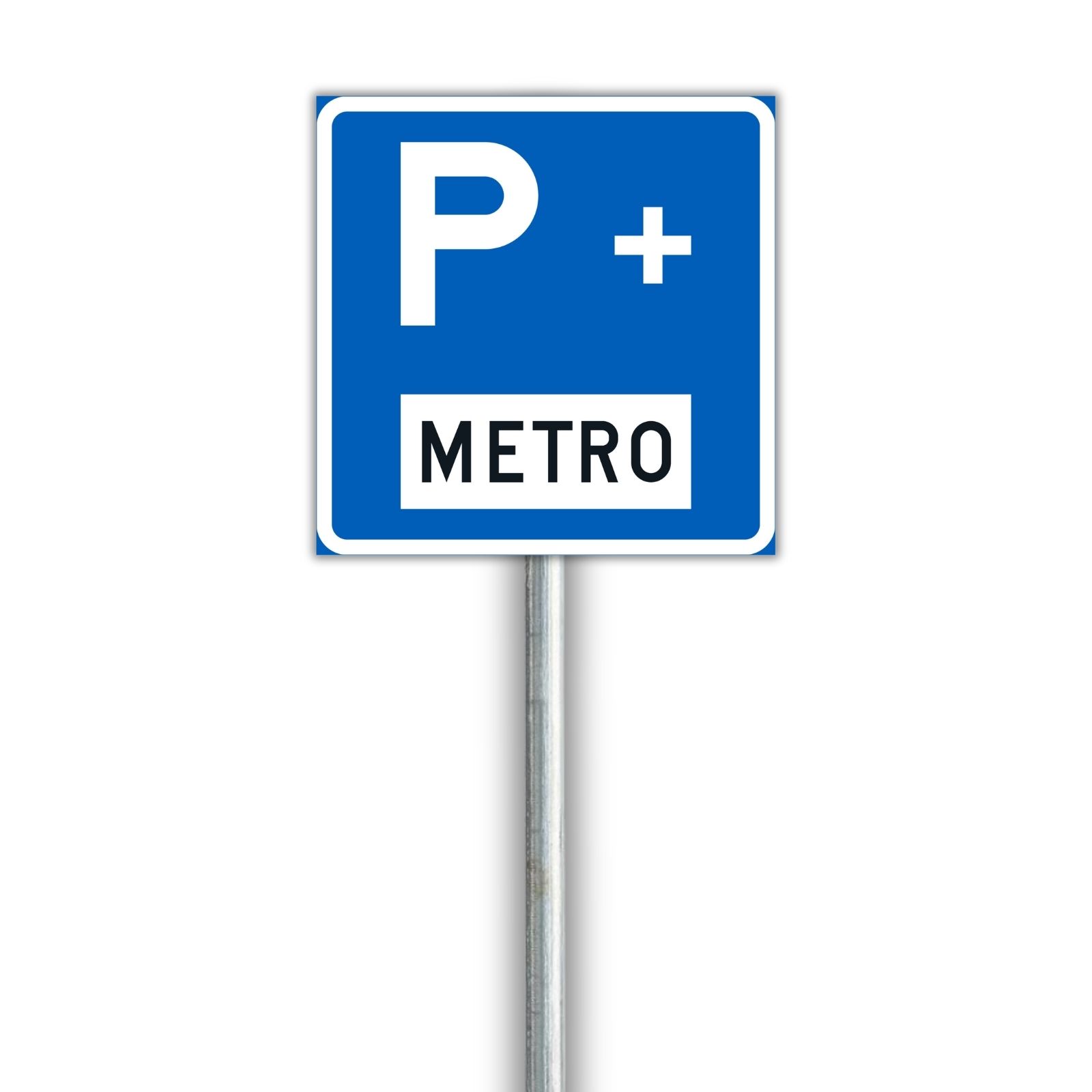 Liikennemerkki, joka osoittaa joukkoliikenteen liityntäpysäköintipaikan. Saatavilla vuokraukseen työmaille ja tilapäisiin liikennejärjestelyihin.