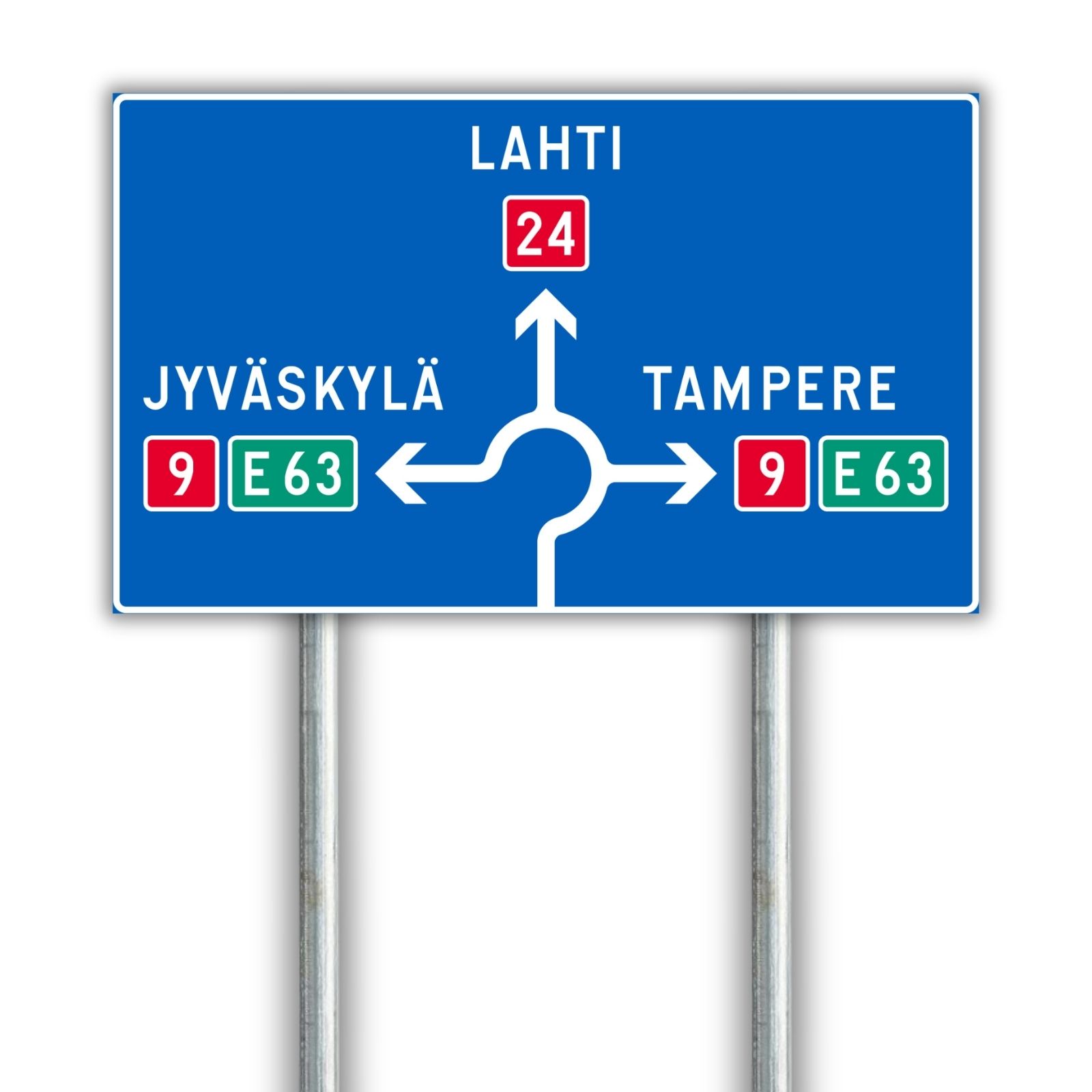 Vihreä pohjaväri osoittaa moottoritien tai moottoriliikennetien suunnan.