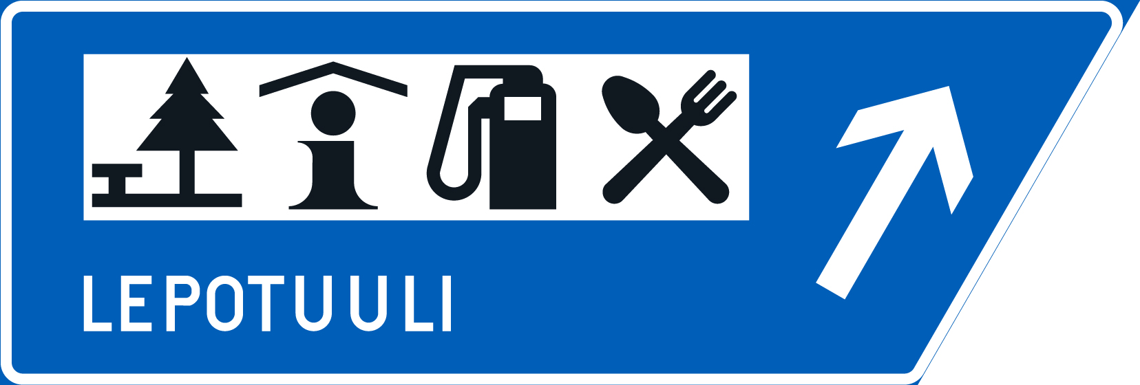 Erkanemisviitta, joka ohjaa palvelukohteeseen liittymässä tai rampilla.