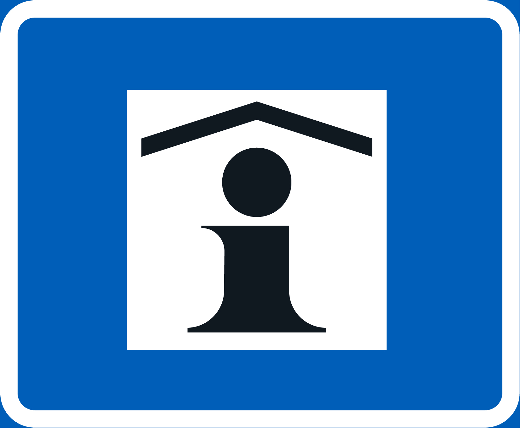 Liikennemerkki, joka osoittaa opastustoimiston sijainnin. Saatavilla vuokraukseen työmaille ja tapahtuma-alueille.