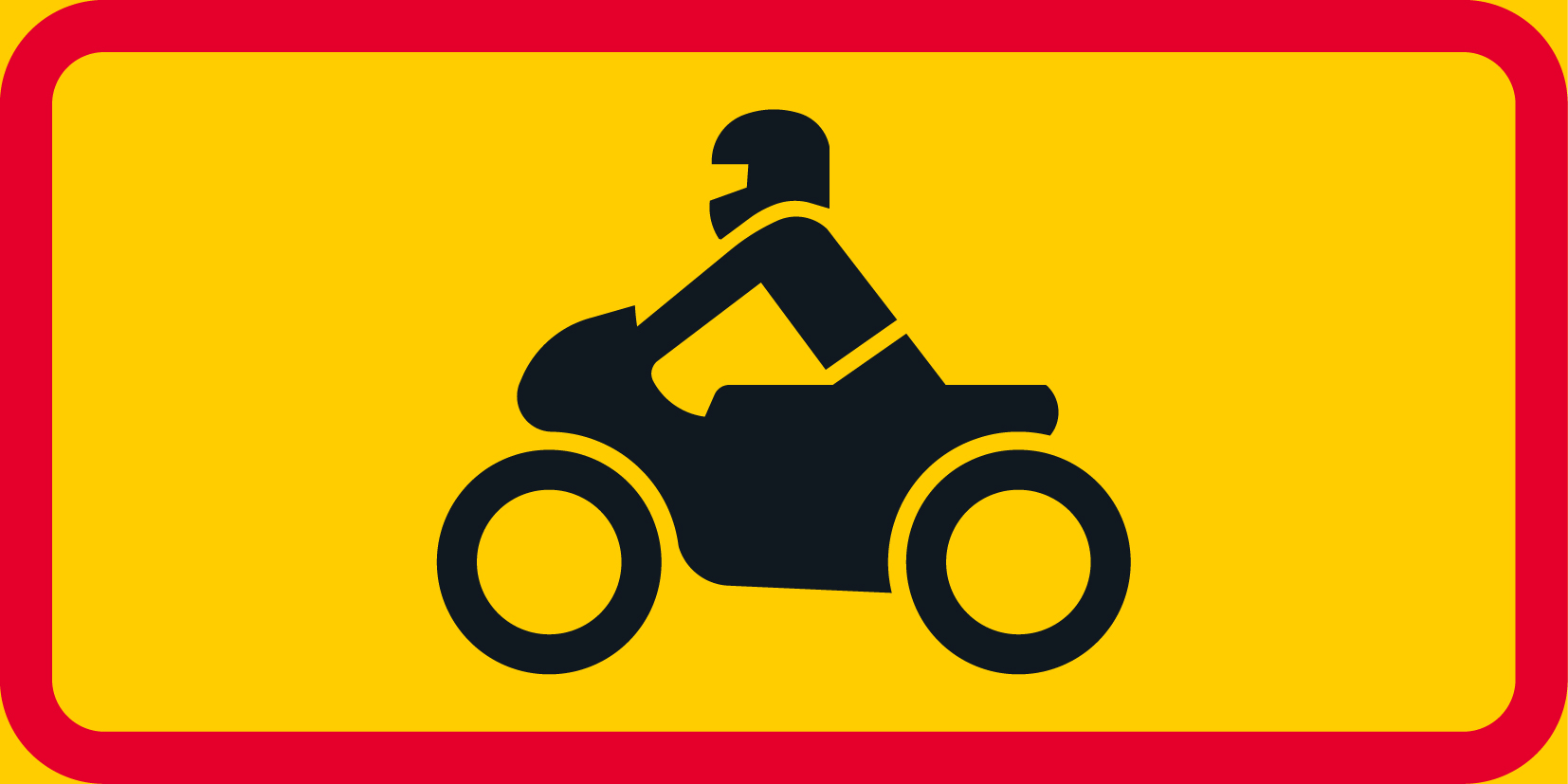 Lisäkilpi, joka rajaa liikennemerkin koskemaan moottoripyöriä. Vuokrattavissa työmaille ja tilapäisiin kohteisiin.