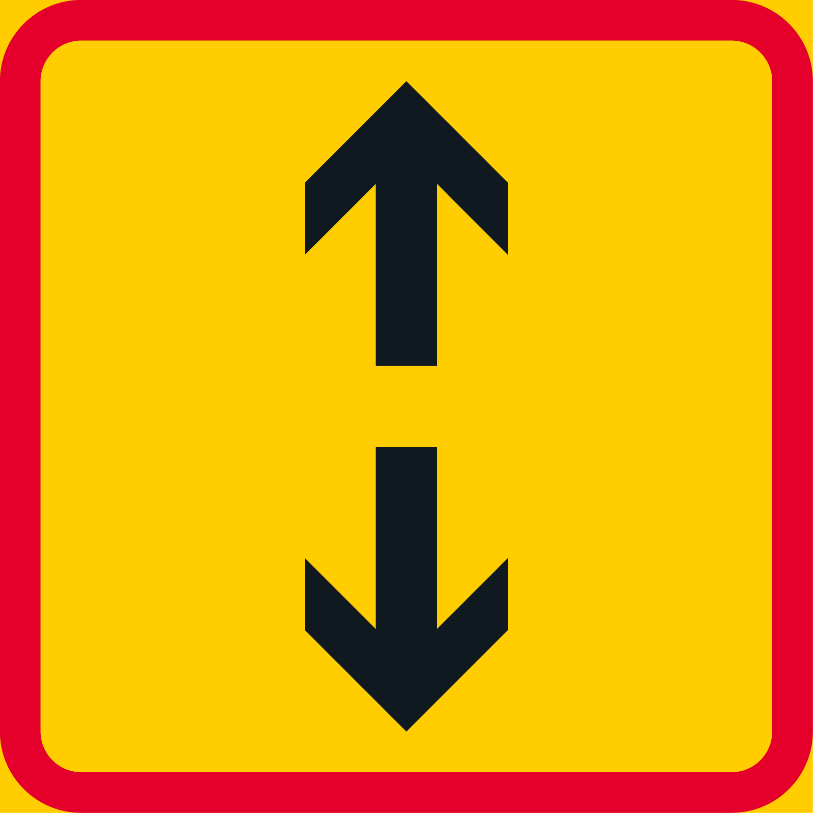 Lisäkilpi, joka osoittaa liikennemerkin vaikutusalueen molempiin ajosuuntiin merkin kohdalta. Vuokrattavissa työmaille ja tilapäisiin kohteisiin.