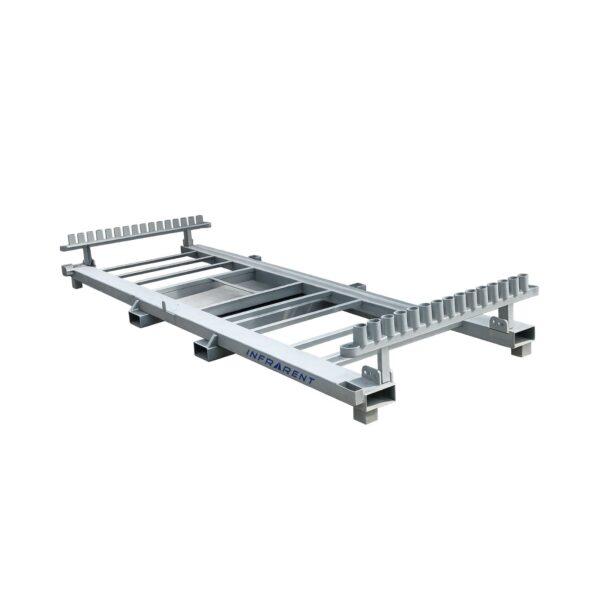 Kuljetusteline teräsaidoille ja jalustoille vuokralle työmaille. Helpottaa aitaelementtien ja jalustojen kuljetusta, varastointia ja työmaan logistiikkaa. Vuokraa Infrarentiltä.