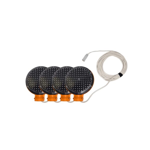 Sarjavilkku vuokralle työmaille ja tilapäisiin liikennejärjestelyihin. Sisältää isäntä- ja orjayksiköt sekä virtajohdon synkronoituun varoitusvilkkuketjuun.